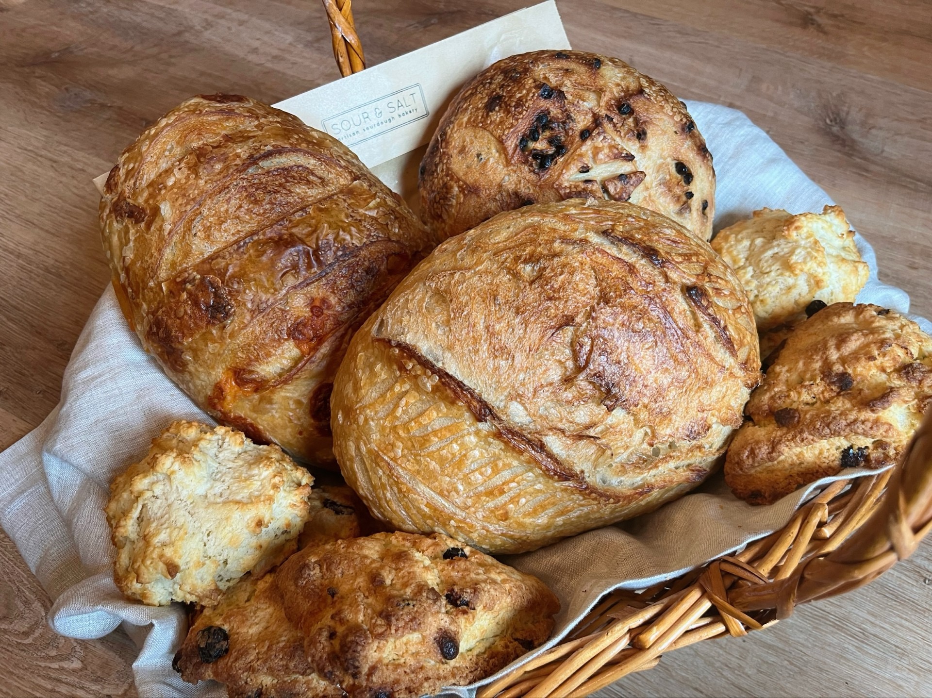 At Sour & Salt, we’re all about that dough life! We’re on a mission to elevate your daily bread from ordinary to extraordinary. With a dedication to traditional sourdough fermentation and a passion for premium ingredients, we bake each loaf with love, laughter, and a pinch of magic. From our oven to your table, we’re here to make your day a little toastier, a little crustier, and a whole lot tastier. Join us in celebrating the simple joy of great bread.